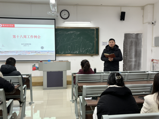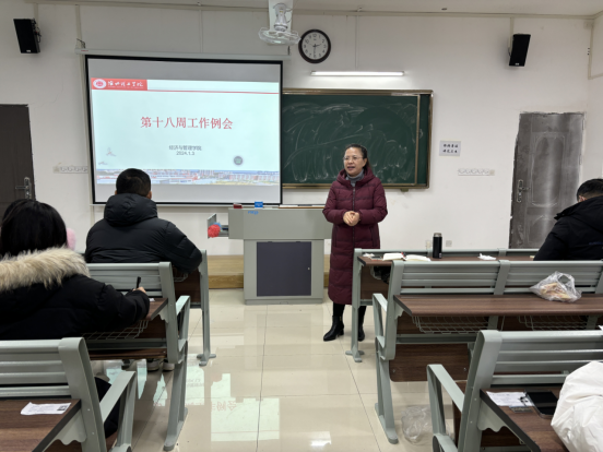 2024年1月3日,经济与管理学院在一教219召开第十八周教学工作例会。会议由吴玲院长主持,经济管理学院全体教师参加。