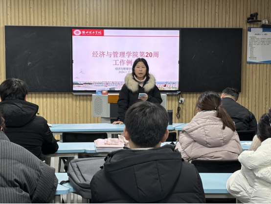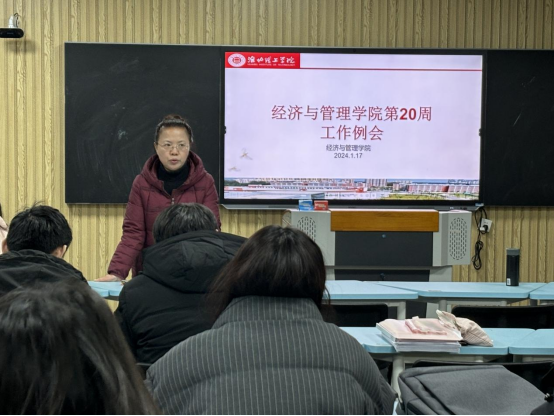 2024年1月17日,经济与管理学院在一教210召开第二十周教学工作例会暨期末工作总结会议。会议由吴玲院长主持,经济管理学院全体教师参加。