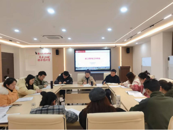 2024年3月4日下午,经管学院于行政楼407办公室召开辅导员工作例会,会议由院长吴玲主持,秦品德副院长、全体学生管理工作人员参加会议。