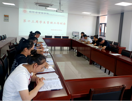 2024年5月20日,经济与管理学院在行政楼725会议室召开本学期第十三周学生管理工作例会,副院长秦品德、书记助理叶赵强以及全体辅导员参加会议,会议由院长吴玲主持。