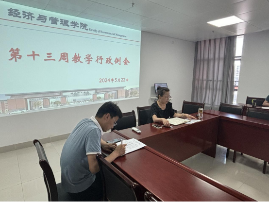 2024年5月22日下午,经济与管理学院在行政楼725会议室召开经济与管理学院第十三周工作例会,院长吴玲主持会议,全体教师参会。