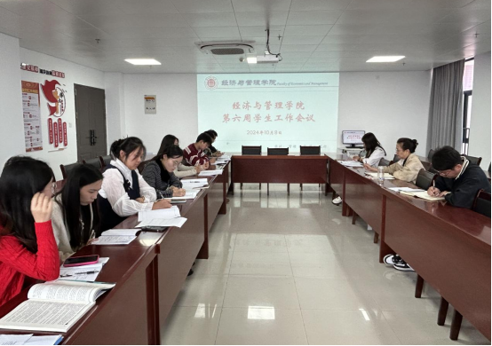2024年10月8日,经济与管理学院在行政楼725会议室召开了本学期第六周学生管理工作例会。学院书记助理叶赵强、团总支书记员禹辛及全体辅导员参会,会议由院长吴玲主持。