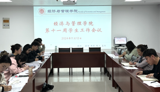 2024年11月12日,经济与管理学院在行政楼725召开本学期第十一周学生管理工作例会。学院书记助理叶赵强、团总支书记员禹辛及全体辅导员参会,会议由院长吴玲主持。