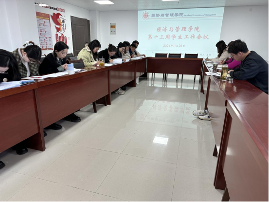 2024年11月26日,经济与管理学院在行政楼725会议室召开本学期第十三周学生管理工作例会,学院书记助理叶赵强、团总支书记员禹辛及全体辅导员参会,会议由吴玲院长主持。