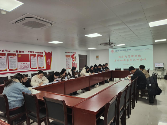 2024年12月3日,经济与管理学院在行政楼725会议室召开本学期第十四周学生管理工作例会,学院书记助理叶赵强、团总支书记员禹辛及全体辅导员参会,会议由吴玲院长主持。