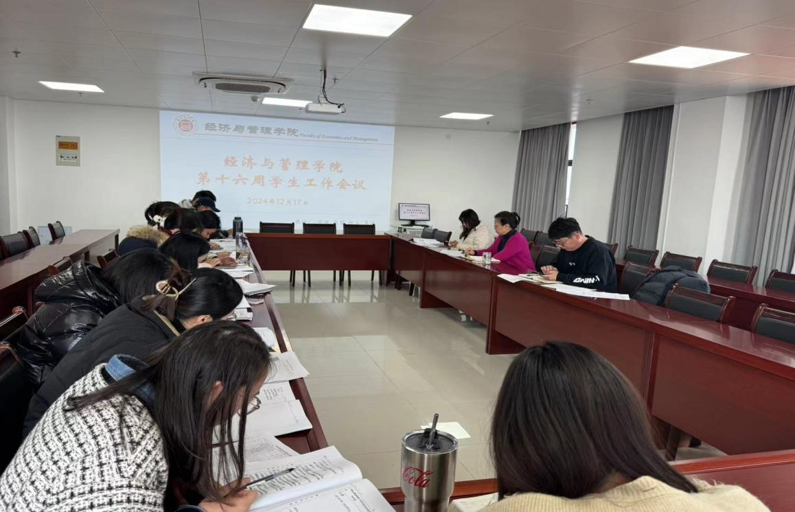 2024年12月17日,经济与管理学院在行政楼725会议室召开了本学期第十五周学生管理工作例会。学院书记助理叶赵强、团总支书记员禹辛及全体辅导员参会,会议由院长吴玲主持。