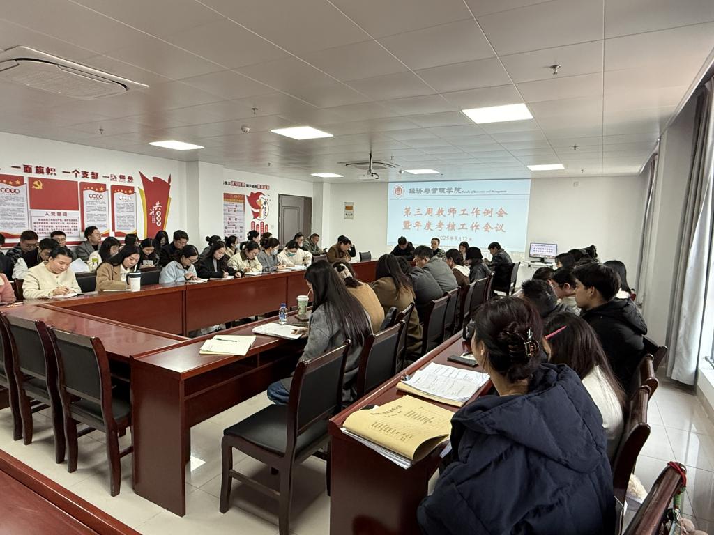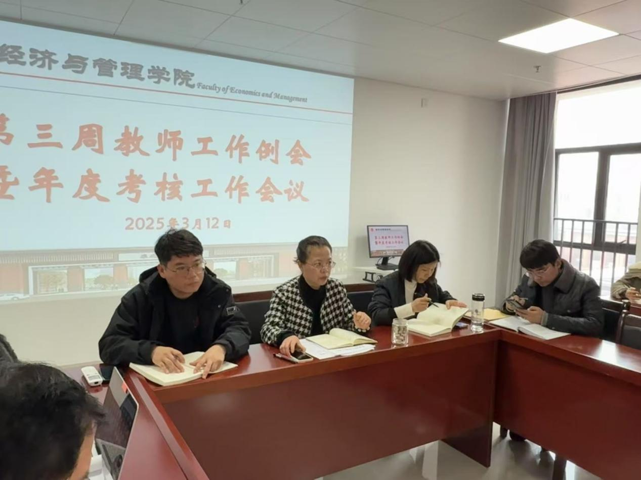 2025年3月12日,经济与管理学院在行政楼725会议室召开了本学期开学第三周工作例会暨年度考核会议。院长助理张珊、叶赵强、实训室主任李建及全体专任教师参会,会议由院长吴玲主持。