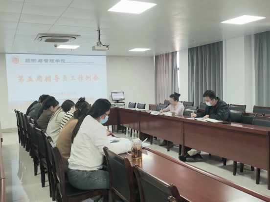 2025年3月25日,经济与管理学院在行政楼725会议室召开了本学期第五周学生管理工作例会。学院书记助理员禹辛、团总支书记王绎程及全体辅导员参会,会议由院长吴玲主持。