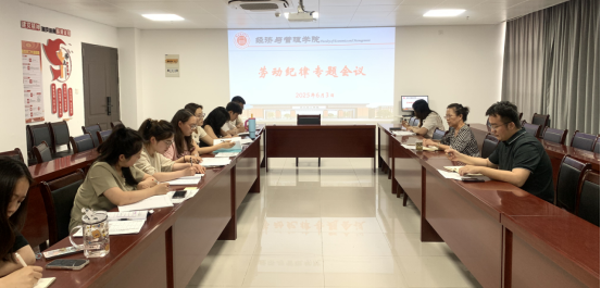 2025年6月3日上午,经济与管理学院在行政楼725 会议室召开了本学期第十五周学生管理工作例会暨劳动纪律专题会议。学院书记助理员禹辛、团总支书记王绎程及全体辅导员参会,会议由院长吴玲主持。