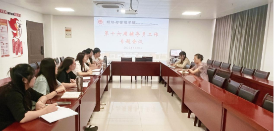 2025年6月10日下午,经济与管理学院在行政楼725会议室召开了本学期开学第十六周的学生管理工作例会。学院书记助理员禹辛及全体辅导员参会,会议由院长吴玲主持。