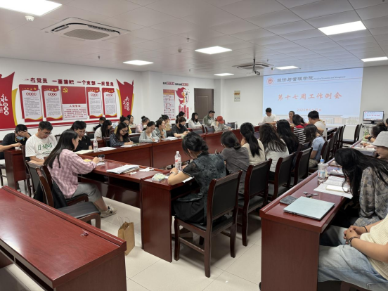 2025 年 6 月 18 日下午,经济与管理学院在行政楼725会议室召开第十七周教学工作例会。院长吴玲,院长助理张珊、叶赵强及全体教师参会,会议由吴玲院长主持。