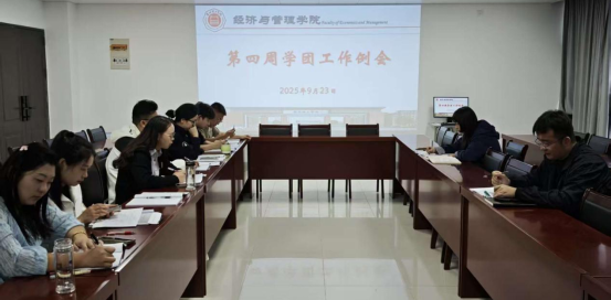 2025年9月23日,经济与管理学院在行政楼725会议室组织召开本学期第四周学团工作例会。会议由院长吴玲主持,学院书记助理员禹辛、团总支书记王绎程及全体辅导员参加。