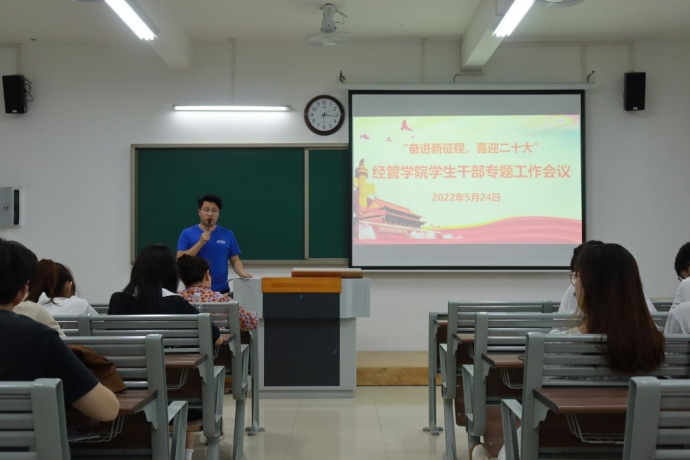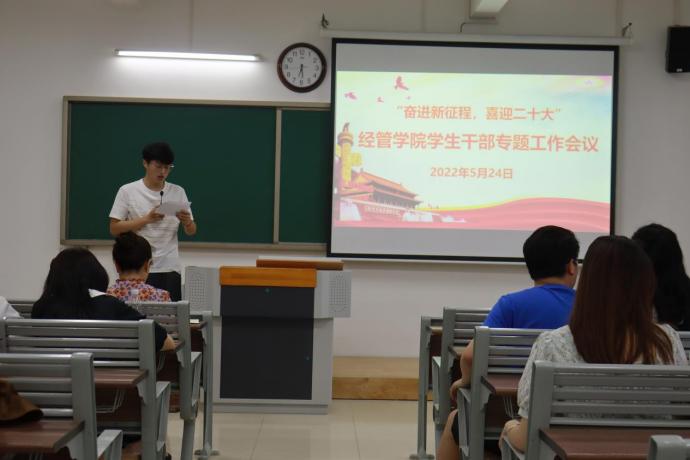 本次学生干部专题会议的召开,使经济与管理学院的学生干部对学生管理工作的理念有一个较大的提升,使学生干部在今后的工作中有了更加清晰的思路和努力方向,也能够使学生干部明确自己职责。明确做一名合格的新时代的大学生学生干部,要以永不懈怠的精神状态和一往无前的奋斗姿态,做新时代的弄潮儿,为二十大的胜利召开献礼!