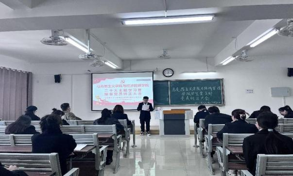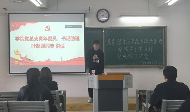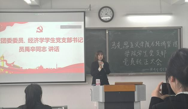 2023年4月7日午,suncitygroup太阳成集团马克思主义学院与经济管理学院学生支部于2教422召开二十大主题学习暨党员转正大会,讨论预备党员刘恩惠、闫瑞同志转正事宜。学院党总支书记助理、团总支书记叶赵强同志特邀参会,经济学学生支部书记员禹辛、青年委员王绎程、管理学学生支部书记石园园、青年委员张雨停及学生支部83名党员参会。大会由学生党支部组织委员刘良晨主持。