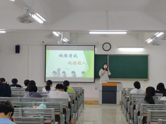 会上,各班级辅导员对教育考试诚信教育进行详细的阐释,带领大家学习了《国家教育考试违规处理办法》和《suncitygroup太阳成集团学生手册学生考试违规处理办法》相关规定,以及学生手册上学校对于考试作弊的惩罚制度等相关内容,以讲述诚信为人、诚信考试的重要意义为重点开展主题班会,引导学生遵规守纪、脚踏实地学习,互相帮助,从而达到共同进步的良好效果。