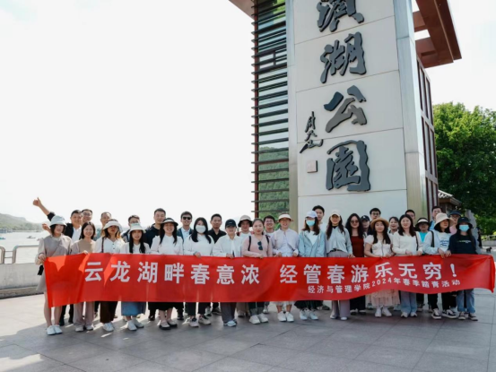 为增强学院教职工之间的交流与合作,促进团队凝聚力。4月24日下午,经管学院根据学校工会的安排部署,精心组织学院全体教师赴云龙湖、云龙山,开展了春游踏青活动。阳光明媚,微风拂面,经管学院的教职工们分成爬山、游湖和研学三个小分队,共同开启了这次愉快的旅程。