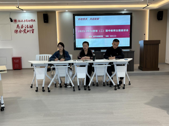 为促进学院青年教师的成长与发展,帮助青年教师做好职业规划和个人发展,进一步提升学院师资队伍的建设水平,经济与管理学院于2024年5月8日下午召开了以“新老携手,共谋发展”为主题的2023-2024学年(二)期中教师主题座谈会。座谈会分为两个会场,根据不同的教研室进行。学院全体教师齐聚一堂,畅谈教学、育人经验,共同探讨教师职业发展规划,为学院的改革与发展贡献智慧与力量。会议分别由院长吴玲和副院长秦品德主持。
