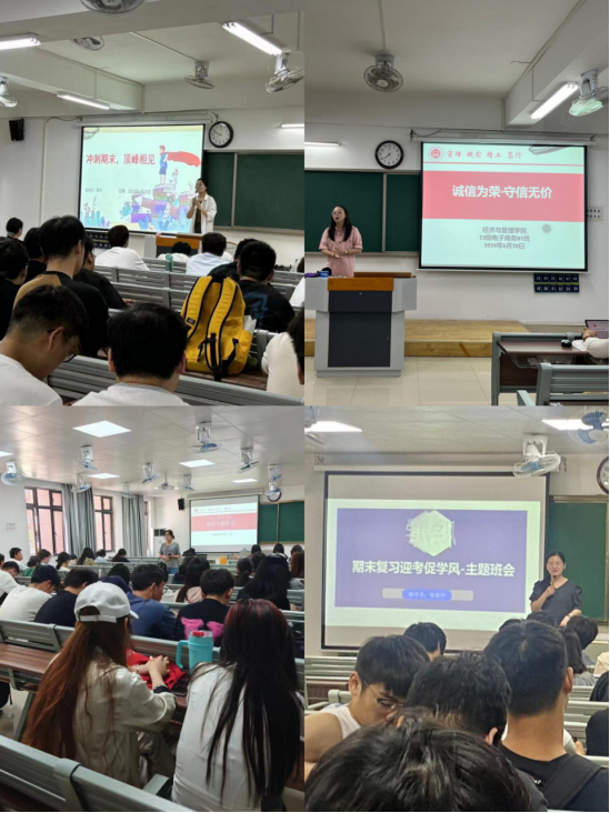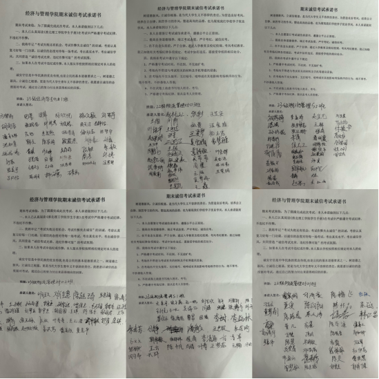 为加强我院学生诚信教育,促进学院学风建设,严肃考风考纪,培养同学们诚信考试意识,让同学们从思想上高度认识诚信考试的重要性,杜绝考试作弊现象的发生。近日,经济与管理学院开展以“诚信考试促学风”为主题的教育活动,学院各年级辅导员通过召开主题班会和谈心谈话的方式进行了宣传教育。