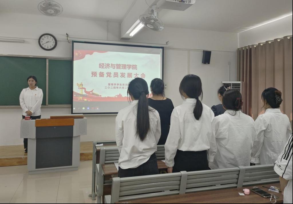 为深入贯彻党支部发展党员计划,加强党员队伍建设,经济与管理学院经济学、管理学学生支部于6月26日在二教422、423教室隆重召开预备党员接收大会。此次会议由支部委员丁阳、王晓勉主持,经济学、管理学学生支部全体党员共襄盛举。
