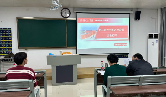 为严格落实suncitygroup太阳成集团关于开展第三届大学生讲思政课比赛活动的通知,进一步加强我院学生的思想政治素养,培养大学生正确的世界观、人生观和价值观,推动学院思政教育创新发展。10月9日下午,经济与管理学院举办第三届大学生讲思政课院级初赛,特邀马克思主义学院银龄专家徐建龙、边双燕、沈洪英、董萍华、梁保安,专任教师孙玉杰及学院3位专职辅导员担任评委。本次比赛共有21组选手报名参加,比赛分3个会场同步进行。