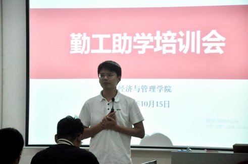 为规范勤工助学工作,经济与管理学院于10月15日晚在1教221教室举办了勤工助学培训专题会议。书记助理叶赵强、实训室主任李健、学院负责劳动与卫生的徐瑞鲜、刘子恢老师、以及负责督导和检查的院学生会生活部部长余昌松,今年秋季录用的75名勤工助学学生参加本次会议,会议由学生会袁怡玟主持。