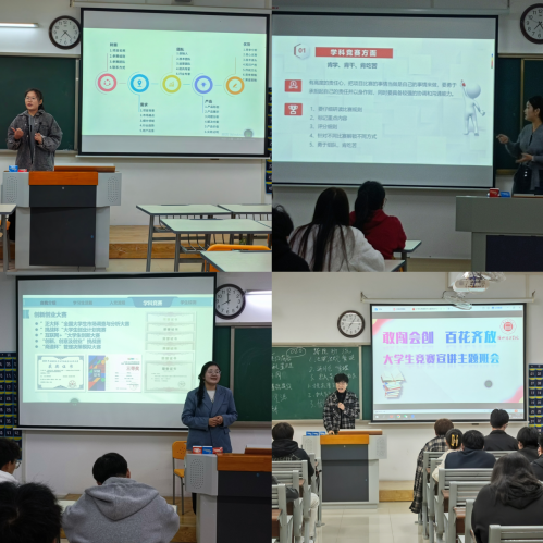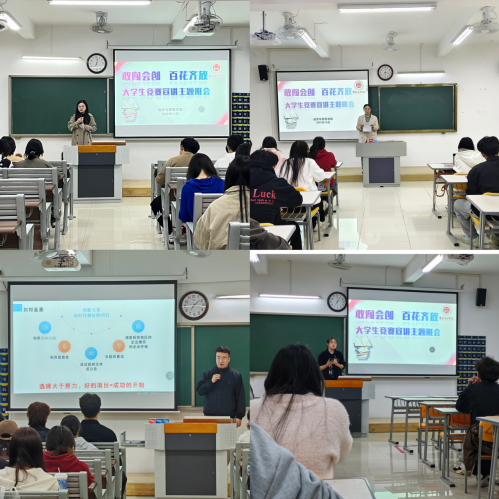 辅导员二进第二课堂,以技能大赛为关键点做宣传。辅导员积极参与学生第二课堂,根据调查问卷结果及各班级技能大赛参与情况,辅导员及学生代表以学院编制的技能大赛文件为模版,认真学习、宣传文件精神,进入班级召开“敢闯会创 百花齐放 大学生竞赛宣讲 ”主题班会,积极向学生阐述参与技能大赛的意义、如何提升技能大赛能力等。