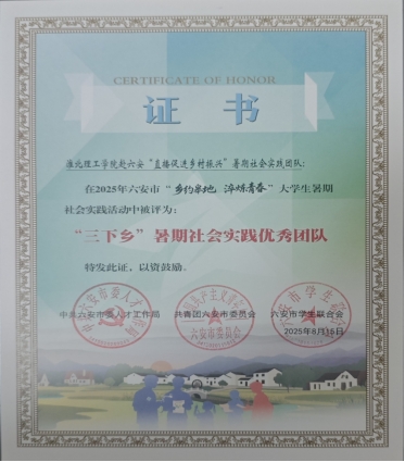 近日,六安市“乡约皋地 淬炼青春”大学生暑期社会实践活动评选结果公布,太阳成经济与管理学院赴六安“直播促进乡村振兴”暑期社会实践团队凭借突出的实践成果和扎实的工作作风,荣获“优秀团队”荣誉称号。