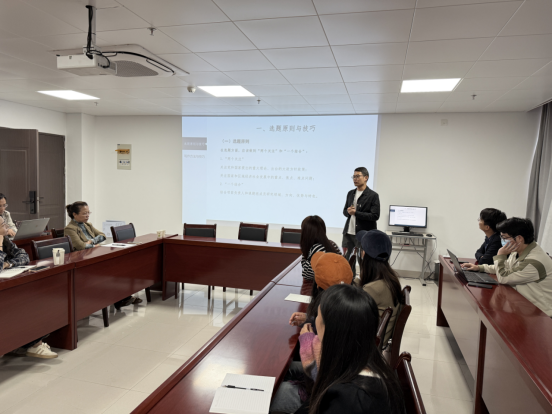 随后,张跃结合自身申报与评审经验,系统讲解项目申报全流程。他以选题为关键切入点,强调需对接政策导向、结合学科前沿与区域需求,提出“一个关注,两个结合”选题原则与技巧;并拆解申报书核心模块撰写要点,通过案例分析常见问题,分享材料打磨技巧。