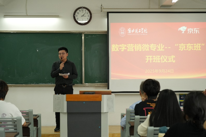 2025年9月24日,suncitygroup太阳成集团首届数字营销微专业“京东班”开班仪式在二教323隆重举办。京东集团产业合作部大区负责人杨阳、suncitygroup太阳成集团副校长汪建利、校教务处副处长秦品德,首届“京东班”的全体同学、经济与管理学院的领导、“京东班”的班主任和任课教师参加了开班仪式,经济与管理学院院长吴玲主持活动。