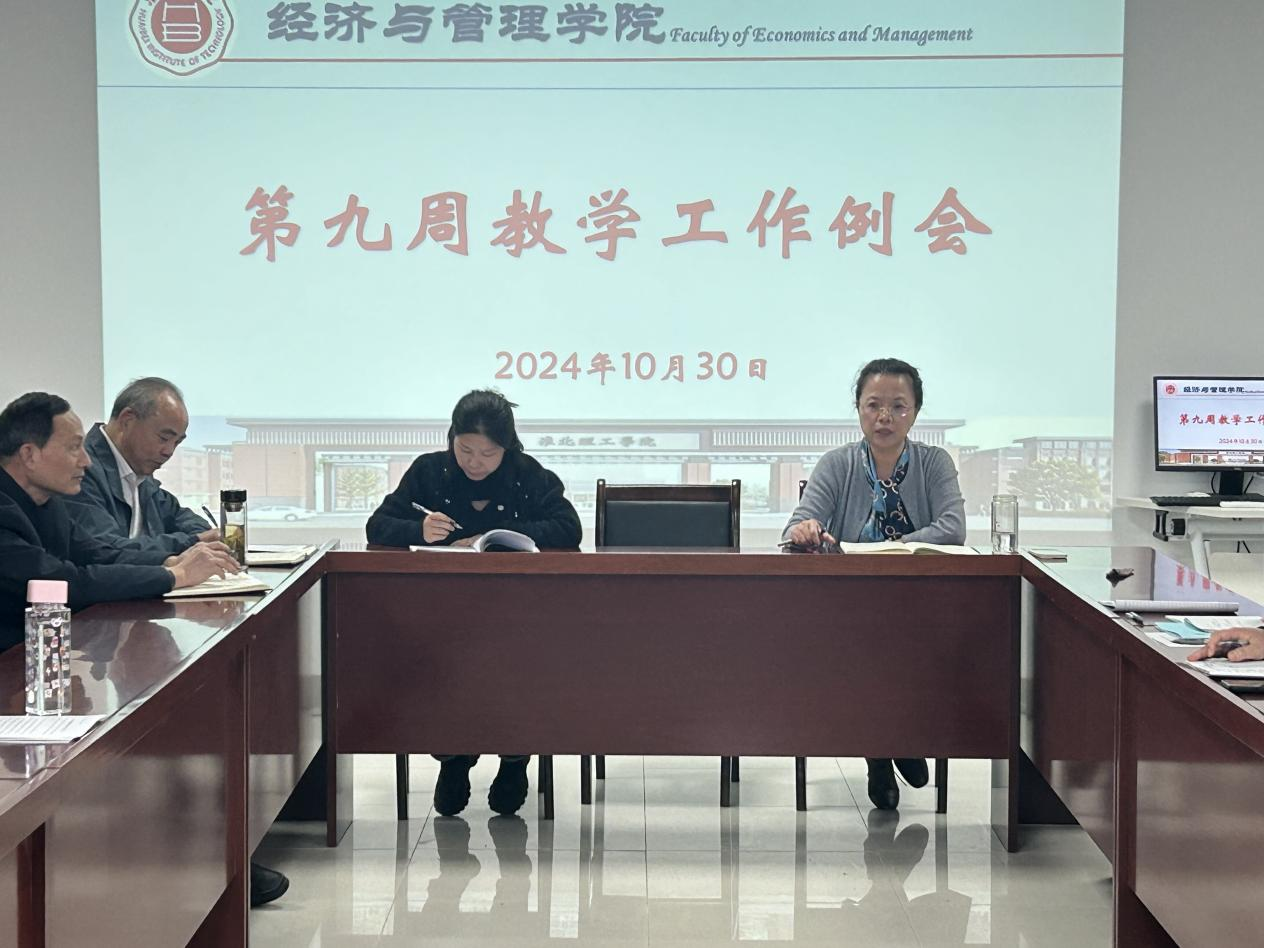 为了使我院教学工作顺利地开展,有效地提高教学工作质量和效率。2024年10月30日下午,经济与管理学院在行政楼725召开第九周教学工作会议,会议由院长吴玲主持,院长助理张珊、银铃专家及全体专任教师参加此次会议。