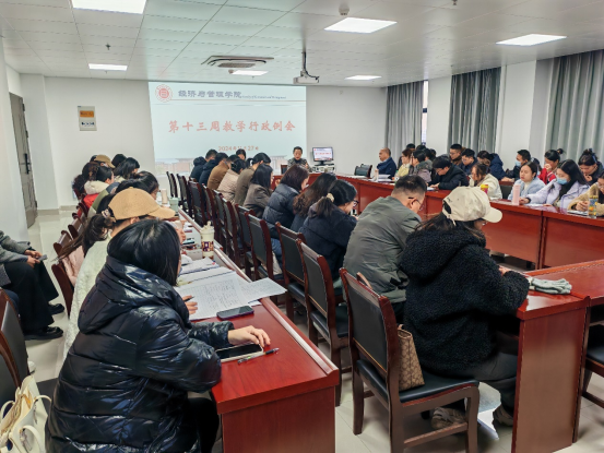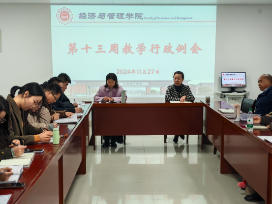 为了使我院教学工作顺利地开展,有效地提高教学工作质量和效率。2024年11月27日下午,经济与管理学院在行政楼725召开第十三周教学工作会议,会议由院长吴玲主持,院长助理张珊、银铃专家代凤礼及全体专任教师参加此次会议。