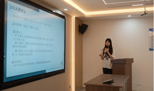 紧接着,陈烨老师指导的团队进行了展示。汇报内容围绕账号定位、目标人群分析、内容形式创新及商业变现路径展开,部分学生团队通过选题突破和热点抓取,并初步探索了通过带货、接广告实现账号盈利的路径。