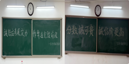 各班级组织同学们签署《期末诚信考试承诺书》,鼓励同学们以诚信为本,凭借自己的实力取得优异成绩。期间,班委干部成员充分发挥带头作用,各班班长、团支书、学生党员率先签署诚信承诺书。