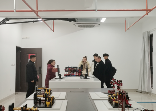 活动期间,京东物流一行参观了校园及经管学院的VR+物流一体化综合实训室和产品创意实训室,吴玲院长详细介绍了现有的实训室、在建的新实训室情况,以及未来实训室的建设规划。宋鹏一行为学校的快速发展和未来的发展愿景感到震撼,并对校企合作共建校内实践基地充满期望。