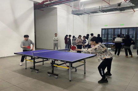 在体育馆二楼的乒乓球比赛场地,比赛还未开始,许多观摩者陪同参赛选手一同进入赛场,为自己的同学加油助威。随着负责人对比赛规则的宣布,比赛正式拉开序幕。选手们的精彩表现使得乒乓球以优美的弧线越过空中,博得了一阵的喝彩。赛事现场进行的热闹有序,每个单项的参赛选手都以最佳的状态在赛场上奋力拼搏。