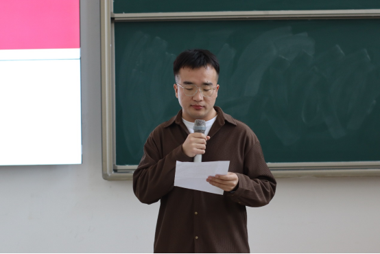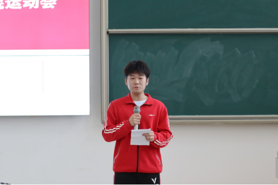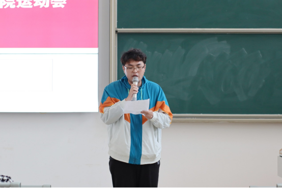 会议第一项,由王绎程老师介绍运动会关于我院的基本情况,本届运动会参赛要求为本专业单项个人项目限报三人,经过两次选拔比赛,13个队伍代表学院参加校运动会。在运动会正式开始前,学院将会安排老师及各班体委进行赛前助力训练,加强运动员素质的提升,能够在正式的比赛中取得优异成绩。