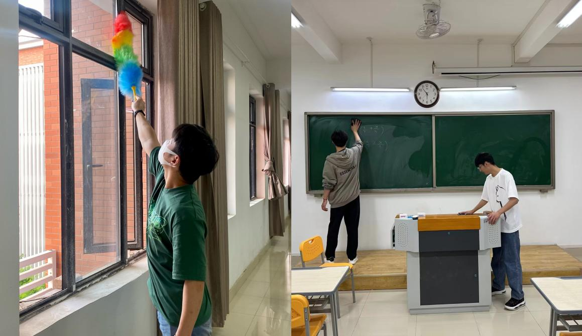 各班级与勤工俭学同学根据学院统一安排,对各班级固定教室、学院公共教室进行大扫除,大家分工合作,清扫地面、擦拭黑板,经过同学们的辛勤劳动,学院的教室等公共环境面貌焕然一新,呈现出整洁舒适的新形象。
