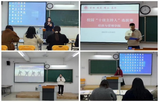为拓展校园文化,培养学生主持能力,11月22日,经济与管理学院于二教314、315举办“十佳主持人”大赛,参赛人员来自全院不同专业,共计二十六名同学,本次大赛评委由不同专业的资深教师担任,辅导员李茹主持。
