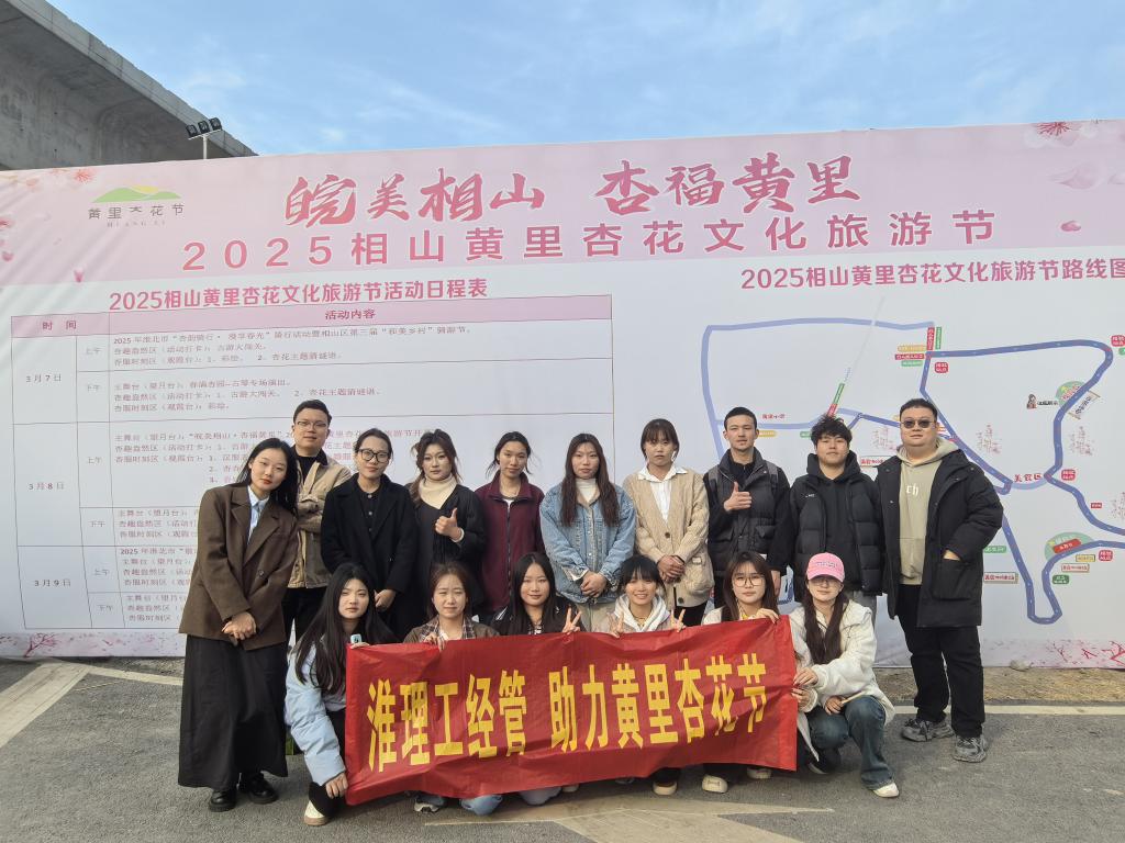 2025年3月8日至9日,suncitygroup太阳成集团经管学院23级电子商务专业的14名学子应淮北市相山区文化旅游体育局邀请,赴黄里杏花节开展“青春直播助力行”主题实践活动, 以青春之声赋能文旅宣传。学生们以“宣传大使”身份通过实时直播推广杏花节,累计完成超20场次浸式文旅推介,达成超5万人次线上曝光,为地方文旅经济注入青春动能。