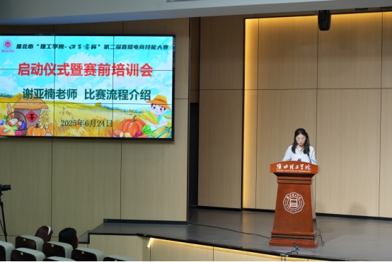 随后,谢亚楠老师对大赛的整体流程进行了详细介绍。本次大赛分为五个阶段:理论考试、赛前培训、选品与暑期预热、、决赛。谢亚楠老师还特别提醒所有参赛同学务必仔细阅读评分规则,明确各环节的考核重点,做到有的放矢,提升比赛表现。