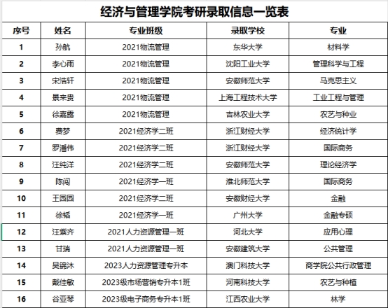 在已结束的2025年全国硕士研究生招生考试中,经济与管理学院首届普本考研取得佳绩,共有16名同学成功上岸,其中物流管理专业考研录取率高达23.8%。