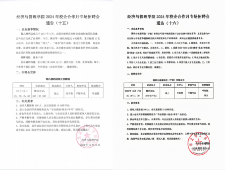 为进一步拓宽就业渠道、丰富学生的职业选择,积极推进2025届毕业生就业工作,经济与管理学院于2024年12月13日和12月17日成功举办了安徽邻几便利店有限公司和博朗尔健康科技(宁波)有限公司的专场招聘会。本次系列活动通过腾讯会议在线举行,吸引了众多2025届毕业生的积极参与。