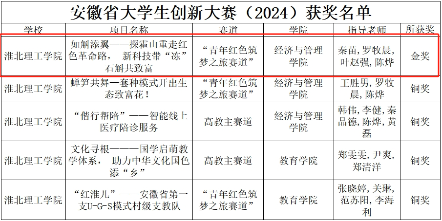 日前,由安徽省省教育厅、合肥市人民政府、安庆市人民政府和芜湖市人民政府联合主办,合肥工业大学、合肥大学、安庆师范大学、安徽机电职业技术学院和合肥市教育局共同承办的安徽省大学生创新大赛(2024)落下帷幕。经过学院初赛和学校推荐的太阳成五支团队参加了包括高教主赛道、“青年红色筑梦之旅”赛道(简称“红旅赛道”)的总决赛,最终来自经管学院的《如斛添翼——探霍山重走红色革命路,新科技带“冻”石斛共致富》项目以其立意新颖、汇报精彩而脱颖而出,荣获安徽省红旅赛道创意组金奖,其余四支团队荣获铜奖,实现了历史性突破。