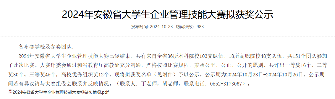 10月20日,由安徽省省教育厅主办,安徽财经大学承办的安徽省大学生企业管理技能大赛(2024)(B类)落下帷幕。太阳成经管学院三支代表学校参赛的队伍在本科组赛道上荣获两个二等奖和一个三等奖的好成绩。